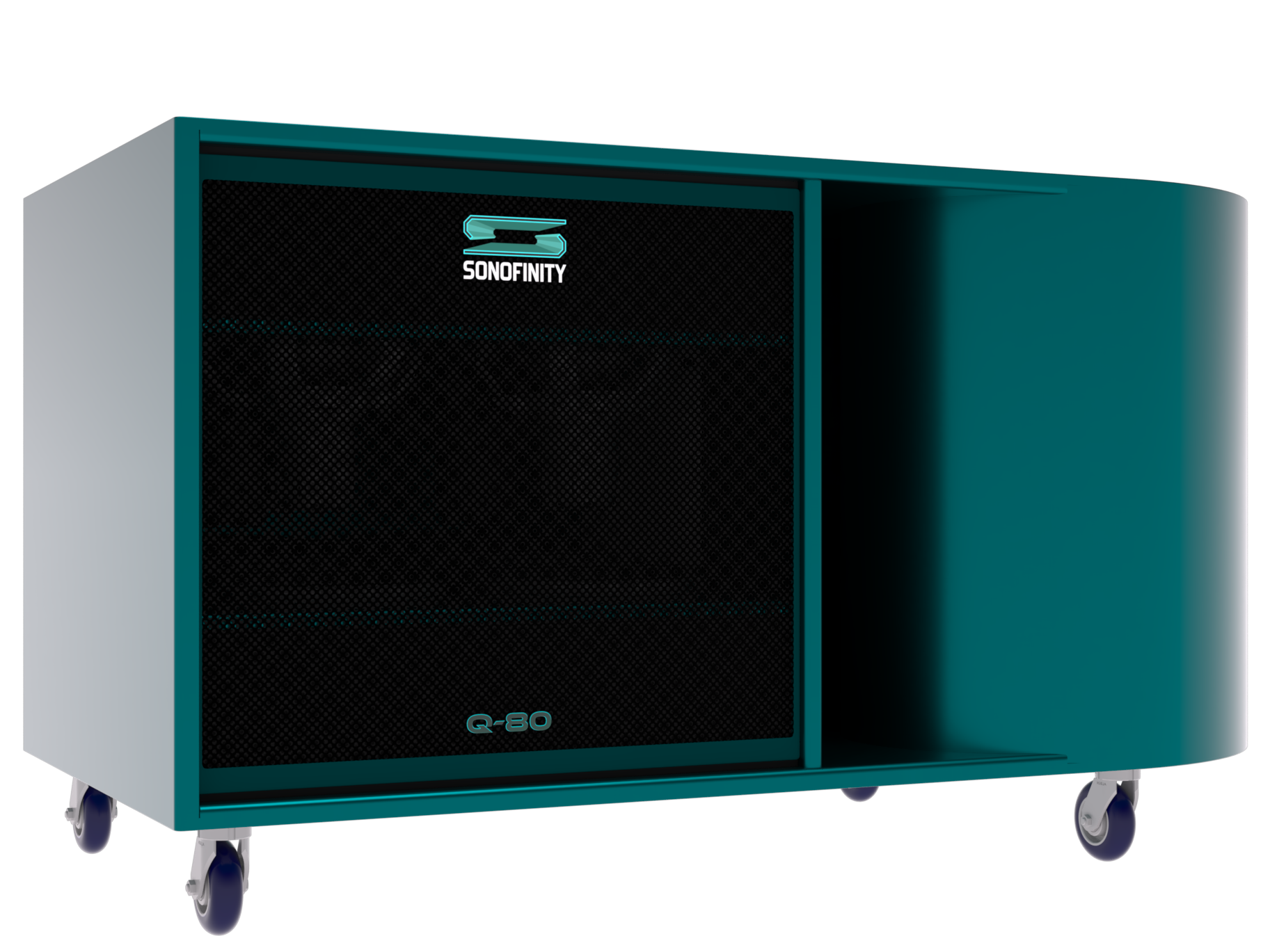 The PAQ-60 and PAQ-60XL designs differ mainly in the lengths of their transmission lines and tuning frequencies of their passive radiators. Their drivers are capable of about twice the excursion and triple the power handling of leading pro-audio drivers. The drivers and passive radiators simultaneously approach their max linear excursions, with the passive radiators’ contributing nearly quadruple the air volume displacement of the drivers. The transmission line aligns and combines the wavefronts of the drivers and passive radiators, giving further acoustic leverage in producing meaningful infrasonics through the resonances of absolutely massive volumes of air! The PAQ-60XL exhibits peak output around 12.5Hz